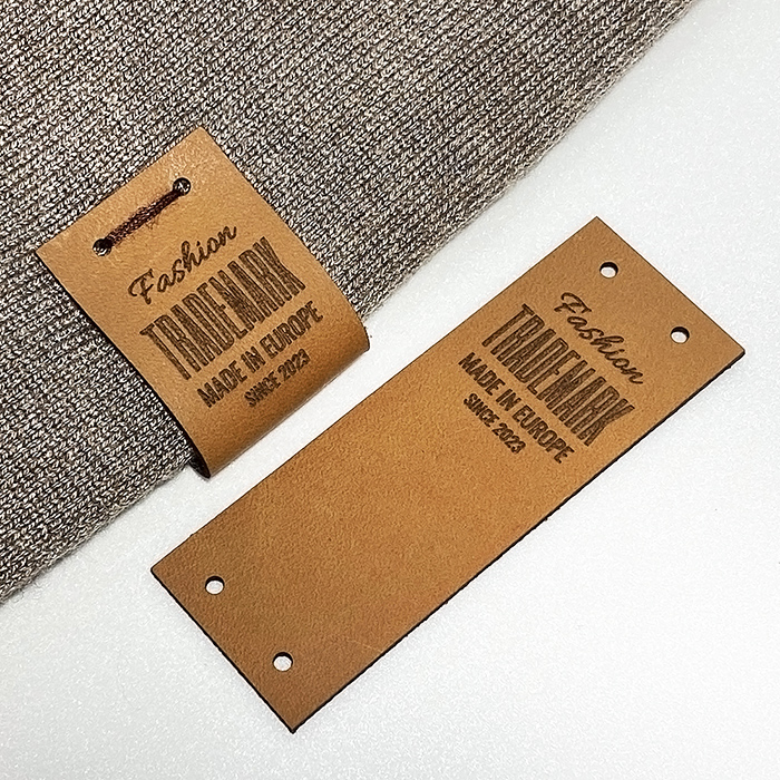 Ετικέτα από φυσικό δέρμα για τζιν, κουκούλα, πουλόβερ, καπέλα, καπέλα, γάντια και πολλούς άλλους τύπους προϊόντων, μοντέλο EP-M19, εξατομικευμένη με το λογότυπο του κατασκευαστή ή την επωνυμία του. Αυτό το μοντέλο δερμάτινης ετικέτας είναι κατασκευασμένο από γνήσιο δέρμα υψηλής ποιότητας, χρησιμοποιώντας εξοπλισμό τελευταίας γενιάς και επαγγελματικές μεθόδους χάραξης ή ανάγλυφης εκτύπωσης με λέιζερ.
