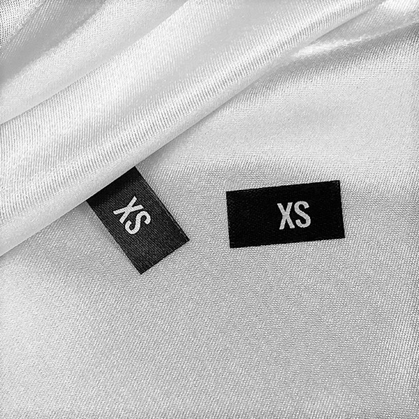 Labels with product number or size made to order from textile material, to be sewn on clothes. Αυτός ο τύπος ετικέτας υφασμάτων κατασκευάζεται χρησιμοποιώντας τις πιο προηγμένες τεχνολογίες στον τομέα της ψηφιακής εκτύπωσης σε υφασμάτινη βάση. Οι ετικέτες τυπώνονται σε ειδικό σατέν με μέθοδο θερμικής μεταφοράς, με εντυπωσιακή ποιότητα εκτύπωσης και υψηλή αντοχή στο πλύσιμο.