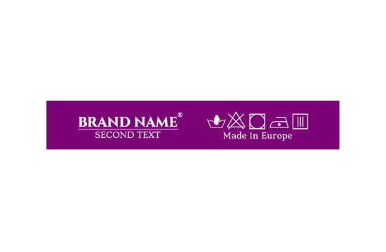 Ετικέτα περιποίησης ρούχων προσαρμοσμένη με σύμβολα πλυσίματος και το εμπορικό σήμα ή το λογότυπο, μοντέλο TL-72 κατάλληλη για κάθε κλωστοϋφαντουργικό προϊόν, ειδικά είδη ένδυσης. Αυτός ο τύπος ετικέτας υφάσματος κατασκευάζεται χρησιμοποιώντας τις πιο προηγμένες τεχνολογίες στον τομέα της ψηφιακής εκτύπωσης σε υφασμάτινη βάση. Οι ετικέτες τυπώνονται σε ειδικό σατέν με μέθοδο θερμικής μεταφοράς, με εντυπωσιακή ποιότητα εκτύπωσης και υψηλή αντοχή στο πλύσιμο.