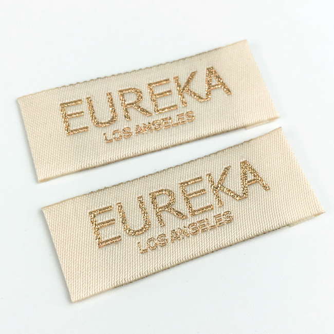 Ετικέτα ρούχων από δαμασκηνό, υφαντό με κλωστή κεντήματος ή κλωστή lurex μοντέλο WL-M10, εξατομικευμένο με το εμπορικό σήμα ή το λογότυπο. Αυτός ο τύπος υφαντής ετικέτας είναι κατασκευασμένος από υλικά υψηλής ποιότητας, χρησιμοποιώντας τις πιο προηγμένες τεχνολογίες από τον τομέα του ψηφιακού κεντήματος σε βιομηχανικό επίπεδο.